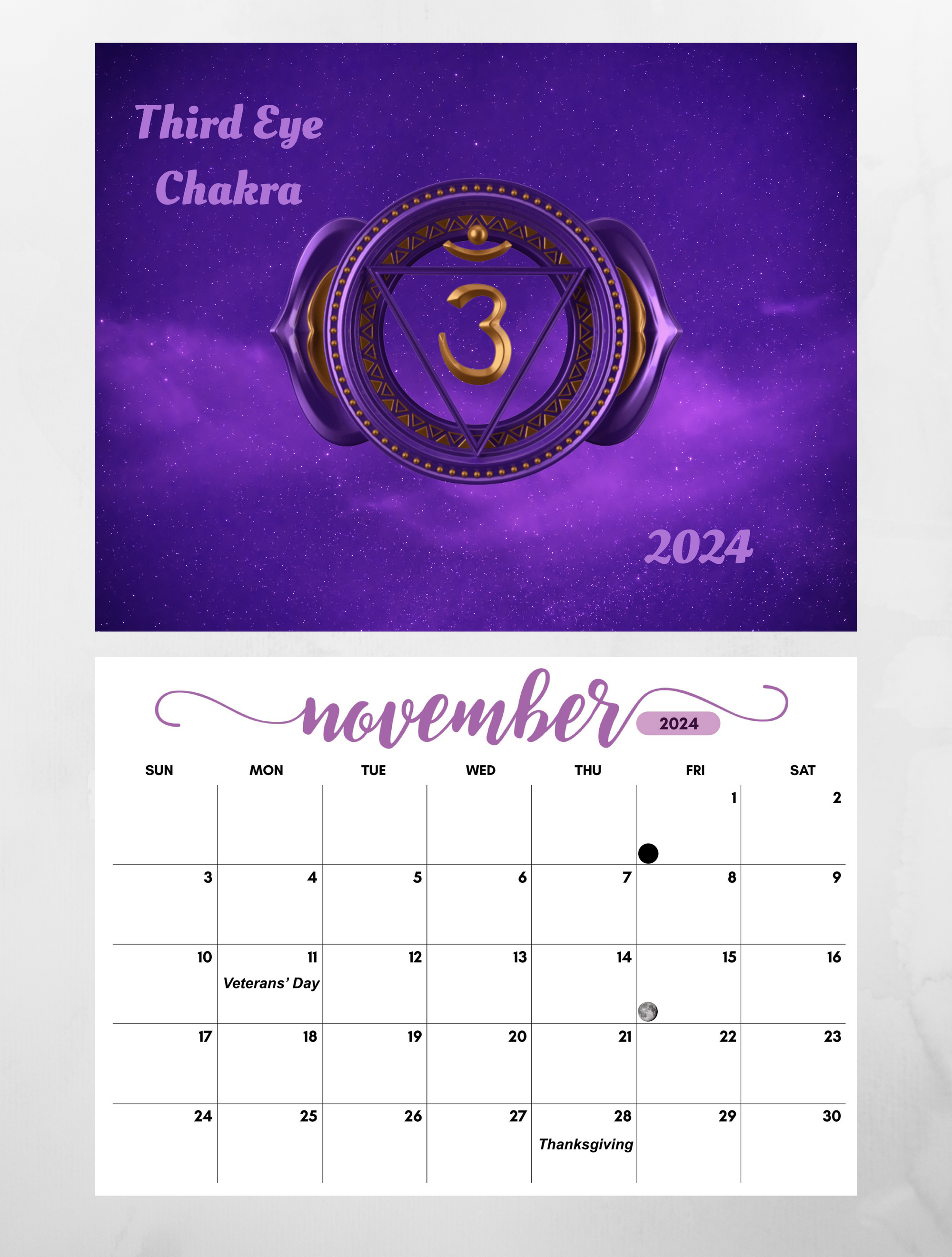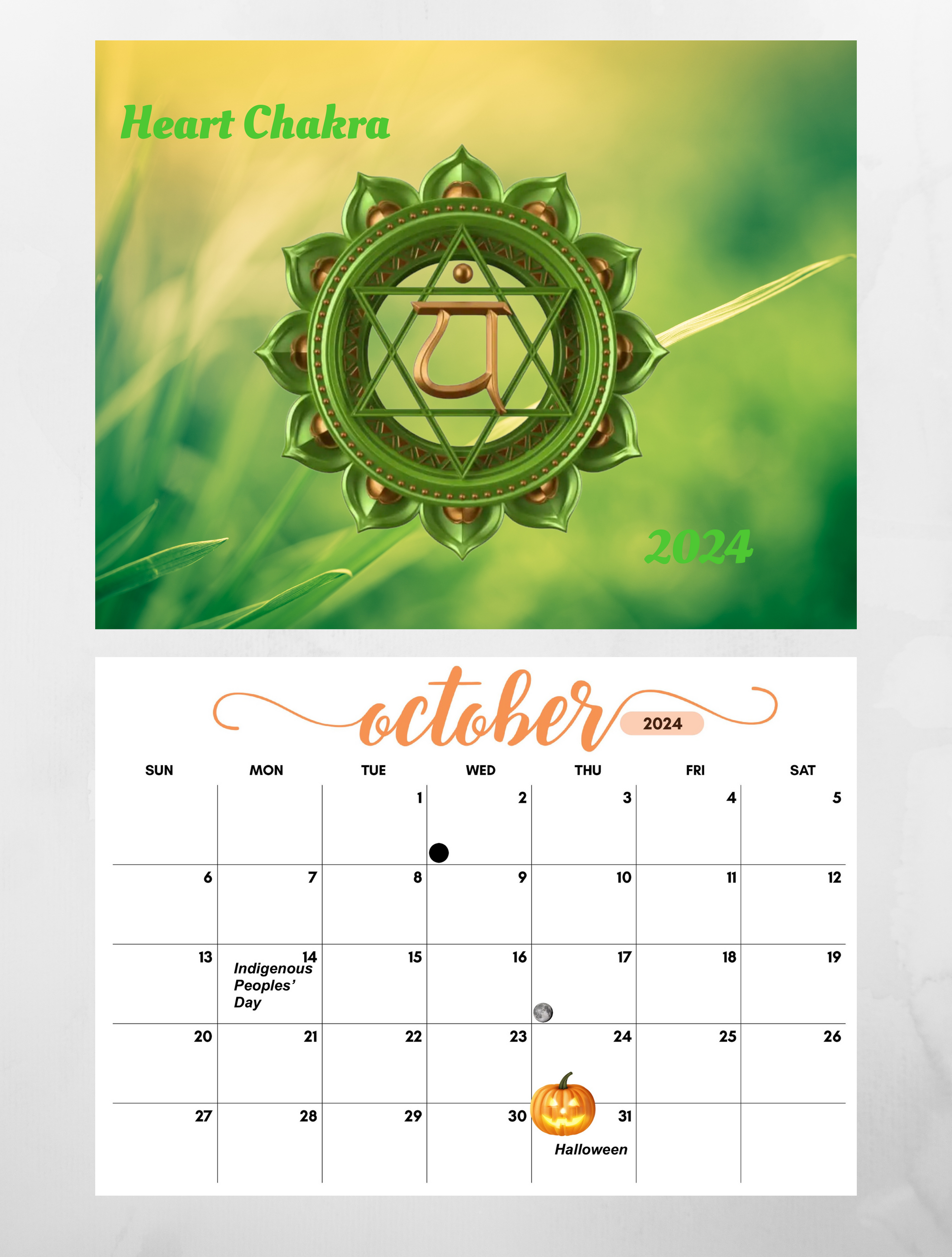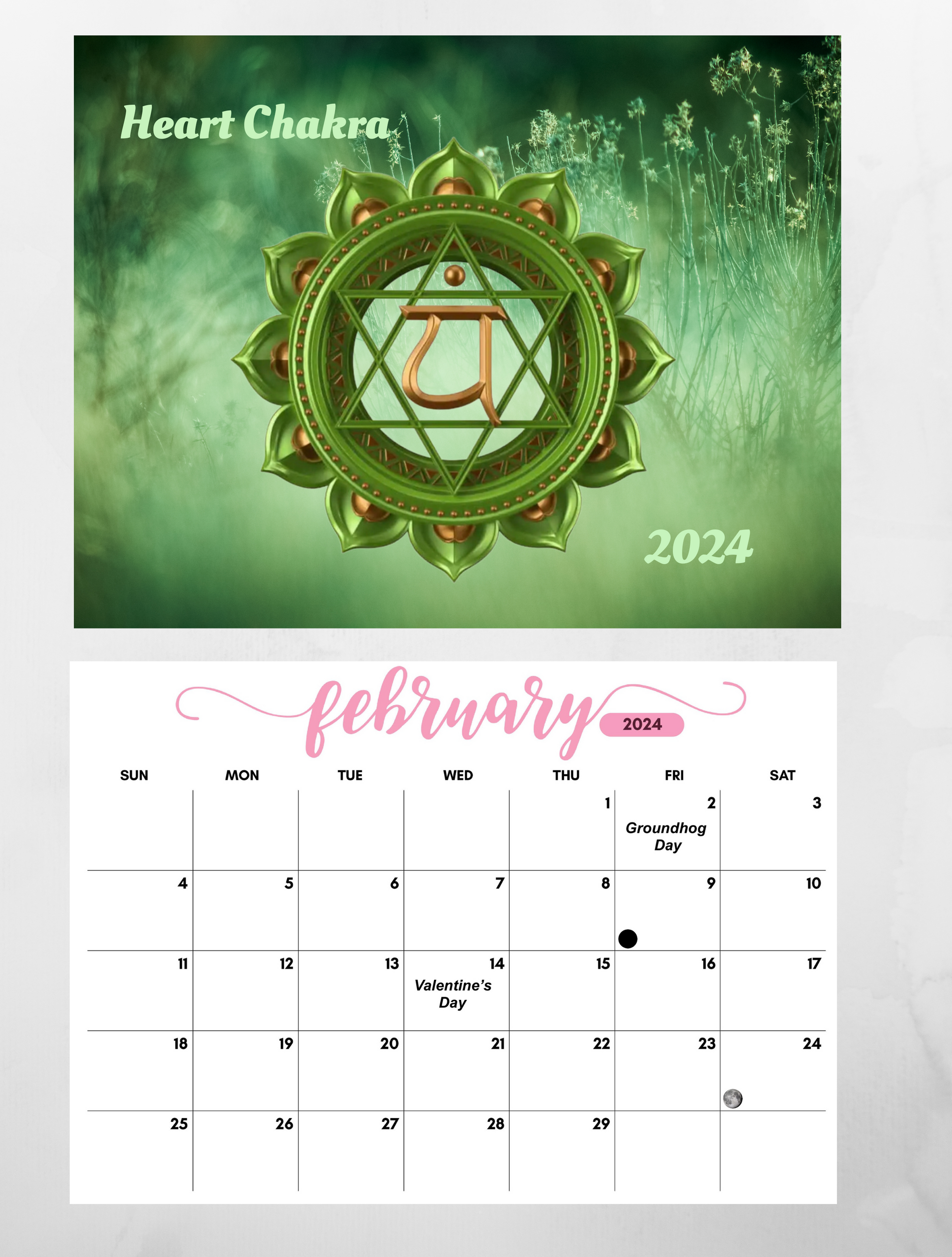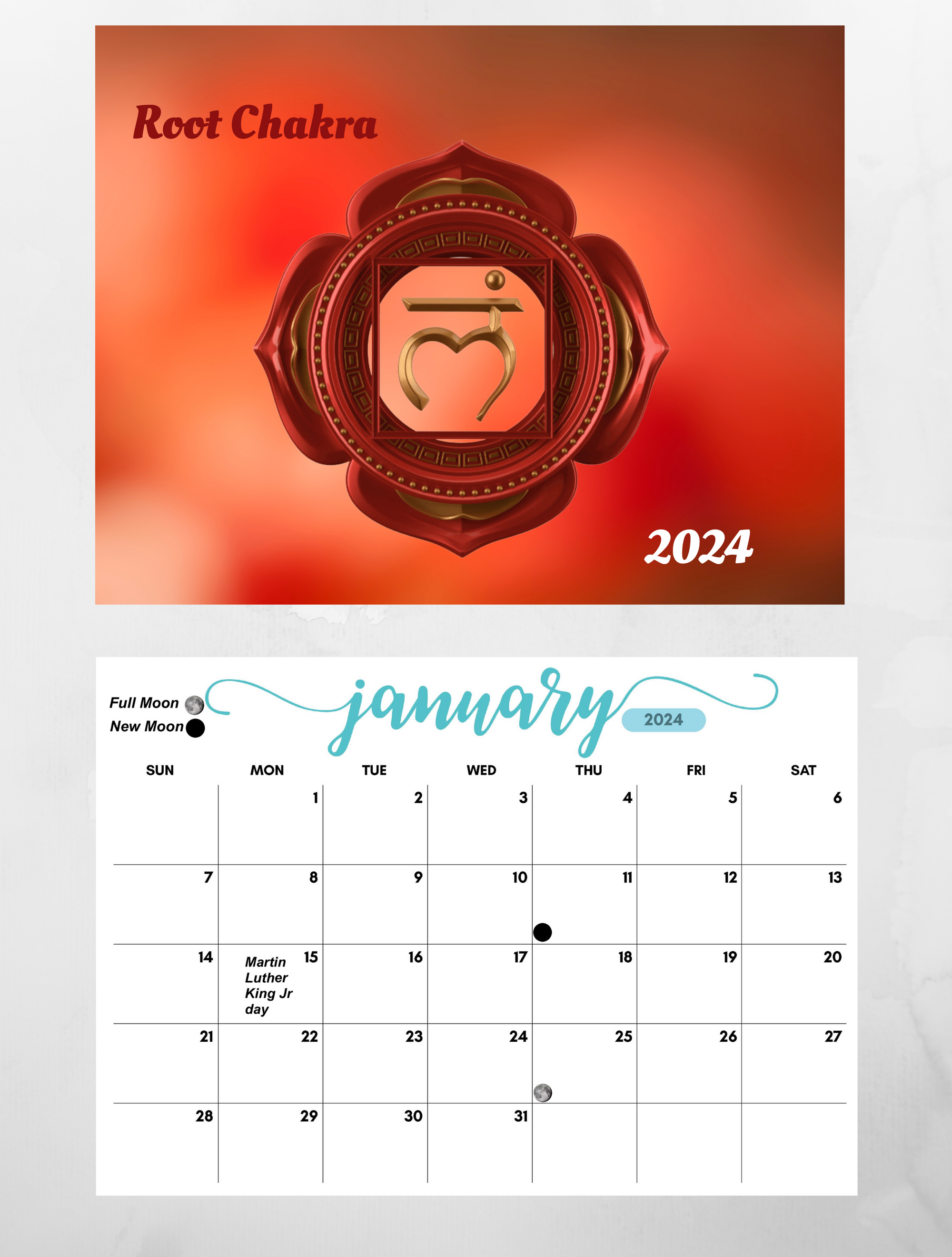 2024 One Page CALENDAR CHAKRA Calendar Print Chakra Art Etsy